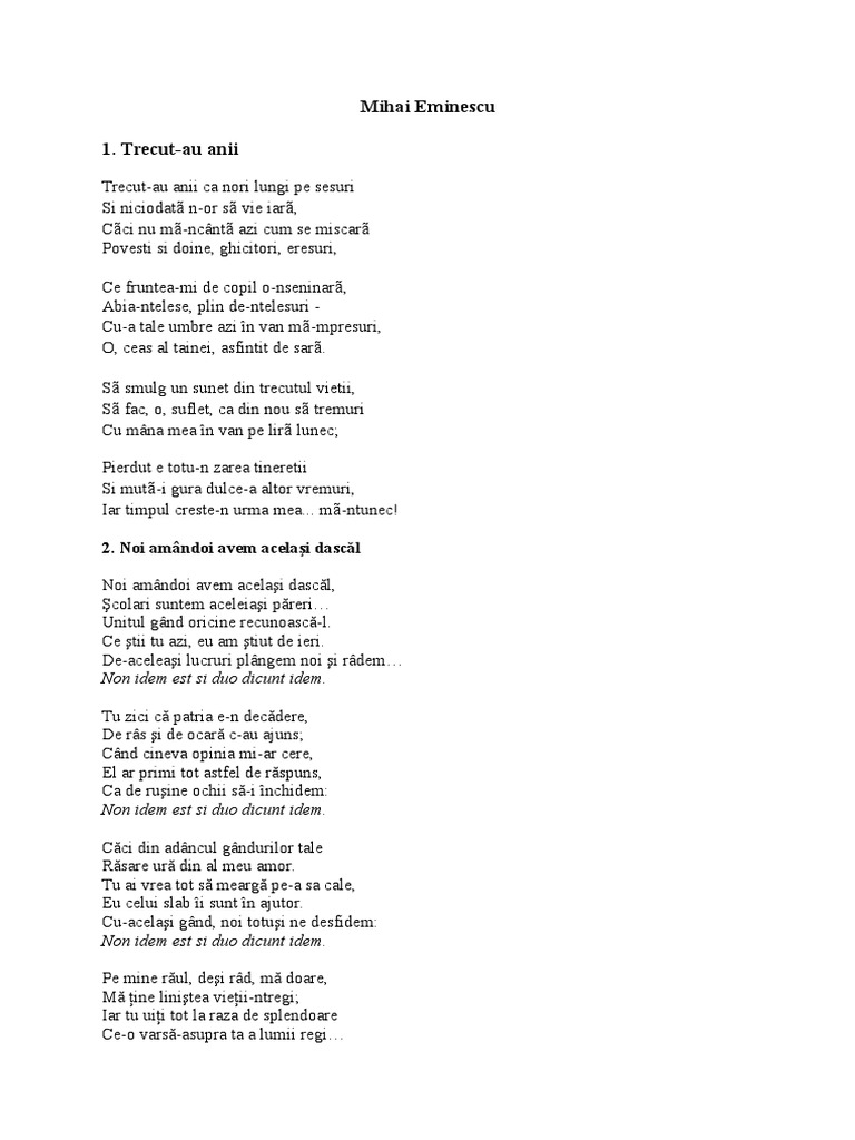 Ultima poezie, scrisă cu o oră înainte de moarte. Cuvânt nainte de tudor arghezi. Poeziile lui mihai eminescu:adio,calin,ce te legeni,fat frumos din tei,freamat de codru,luceafarul,versuri poezii mihai eminescu,referat mihai eminescu. Mai mult ca alte specii cu forma fixa, sonetul face glorie. Astăzi, 15 ianuarie 2018, se împlinesc 168 de ani de la nașterea marelui poet român mihai eminescu.